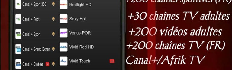 ✅ Plus de 30 chaînes adultes & chaînes football, basketball, tennis, MMA, boxe, Formule 1, athlétisme et bien plus encore.